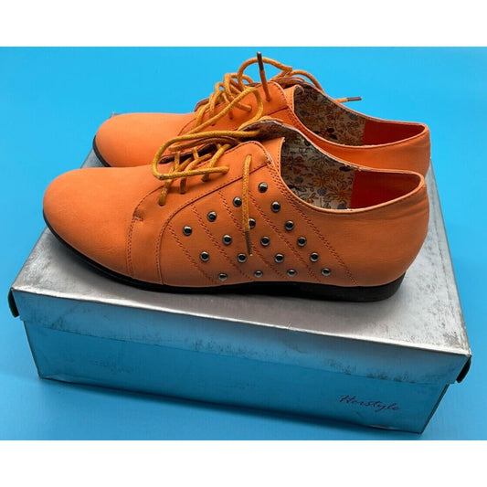Herstyle Cerra Orange Lace-Up Oxfords Size 7 New Box Casual Flats Round Studs