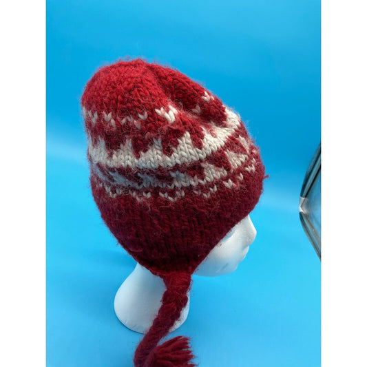 The North Face Red Knit Trapper Hat w/ White Snowflake Pattern One Size Acrylic