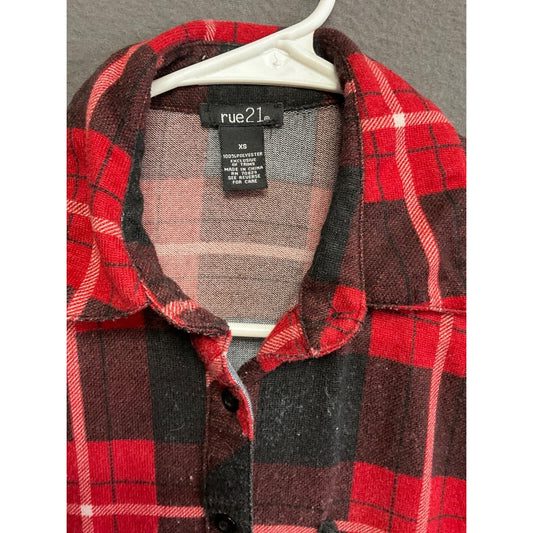 Rue21 Women's XS Plaid Flannel Shirt Red Black Grunge Layering