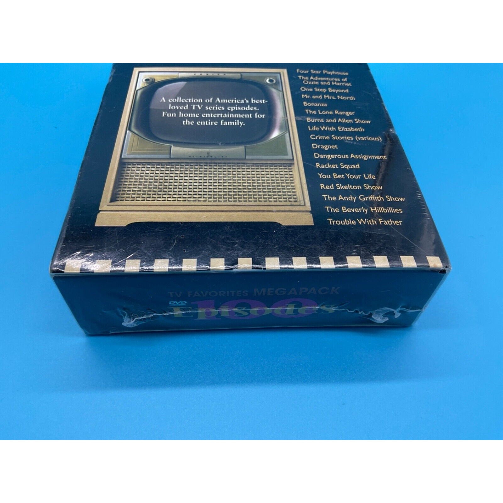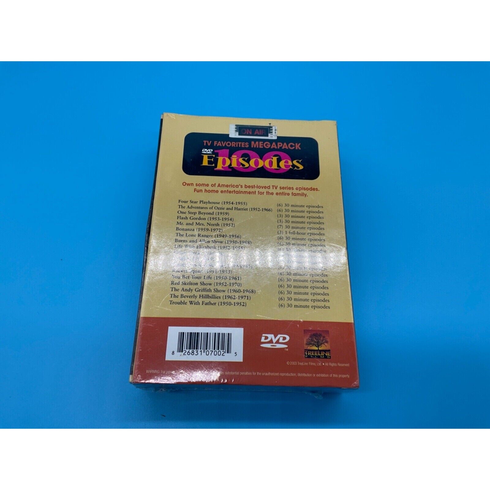 This 100 Episode TV Favorites Megapack is a 9-Disc Set from 2003, featuring hours of classic television entertainment. It includes iconic shows such as THE ADVENTURES OF OZZIE AND HARRIET, ONE STEP BEYOND, BONANZA, THE LONE RANGER, YOU BET YOUR LIFE, THE ANDY GRIFFITH SHOW, THE RED SKELTON SHOW, and many more. A must-have for vintage TV lovers and collectors.