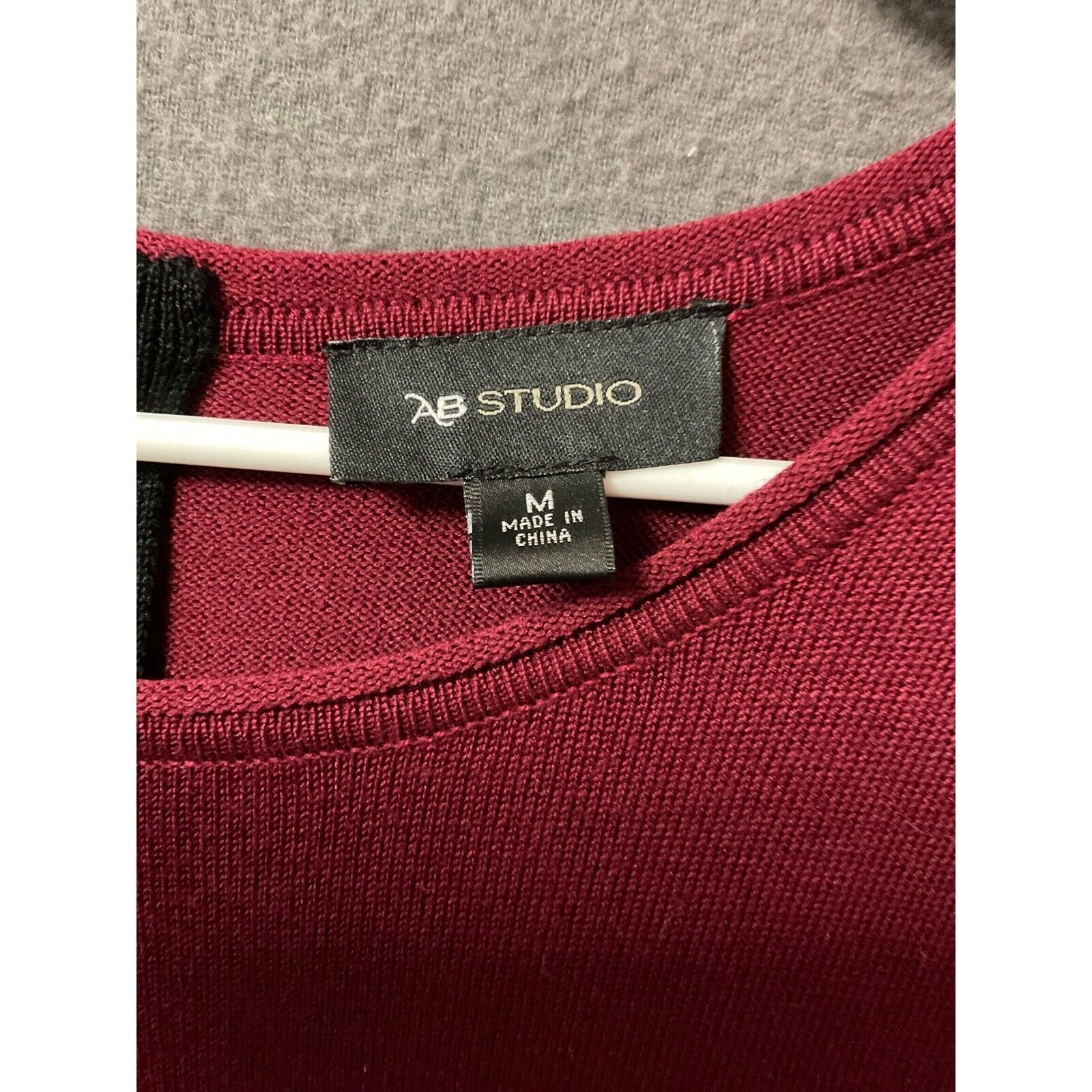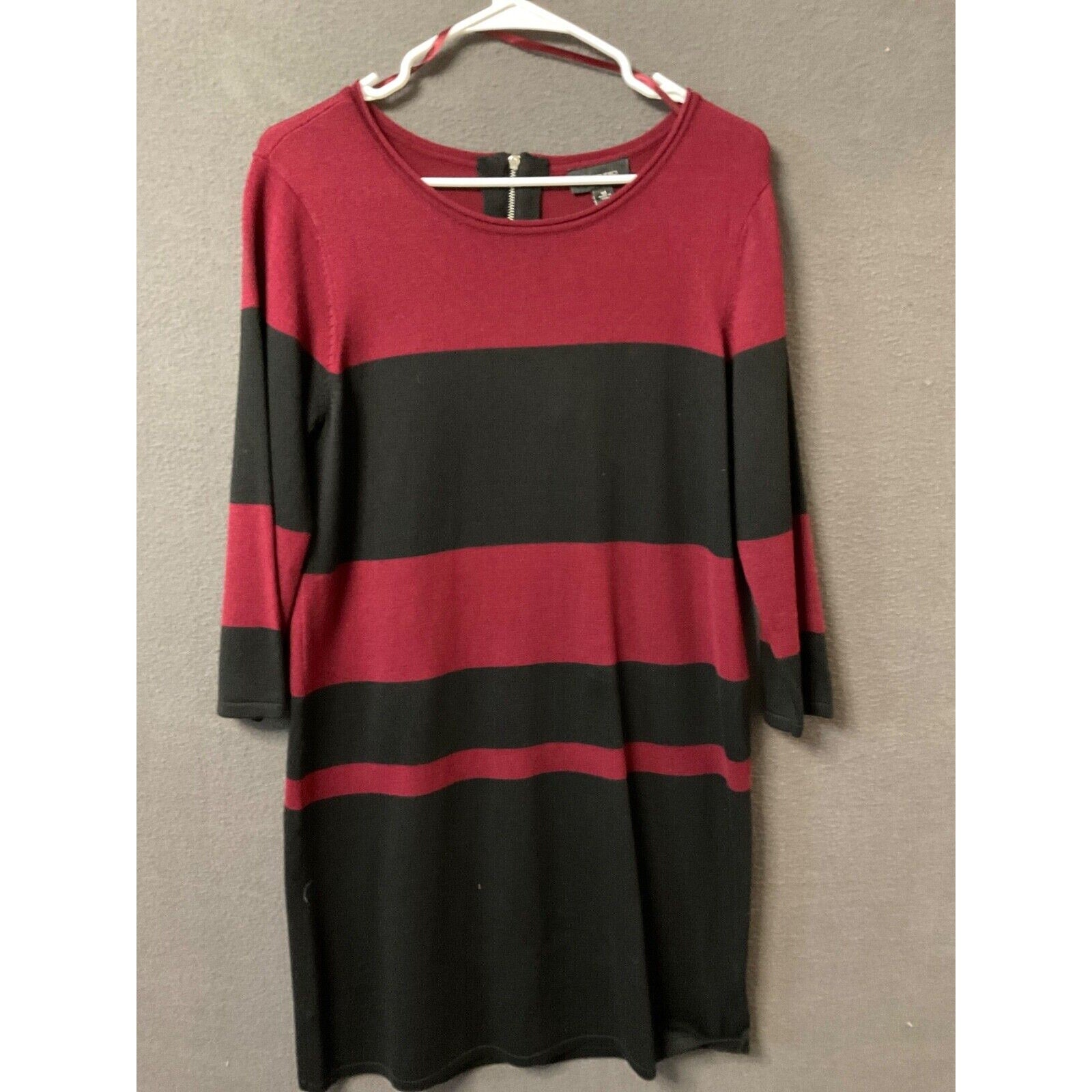 AB Studio Burgundy & Black Striped Knit Dress Medium Rayon Blend Back Zip