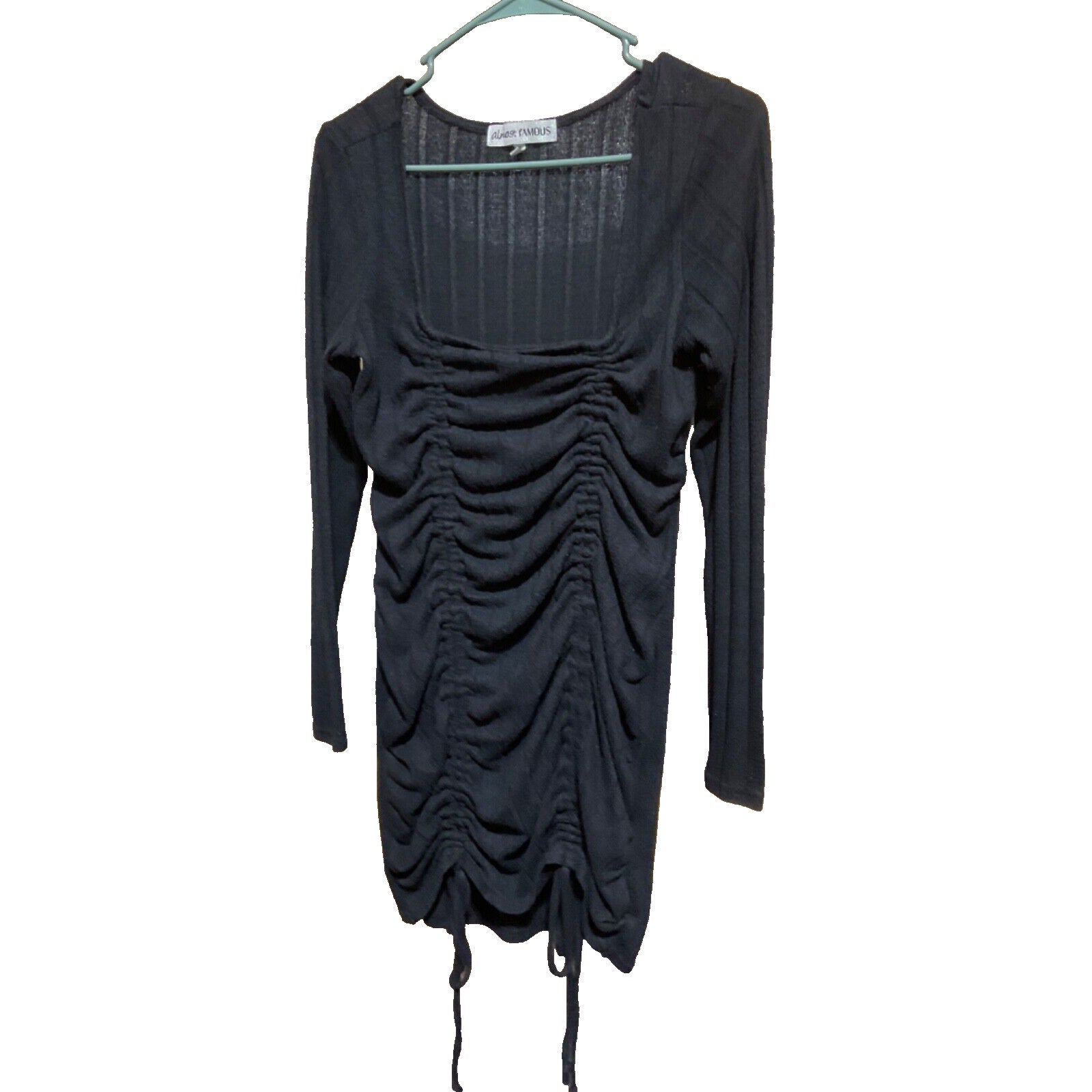 Almost Famous XL Black Long Sleeve Bodycon Dress Drawstrings Adjustable Length