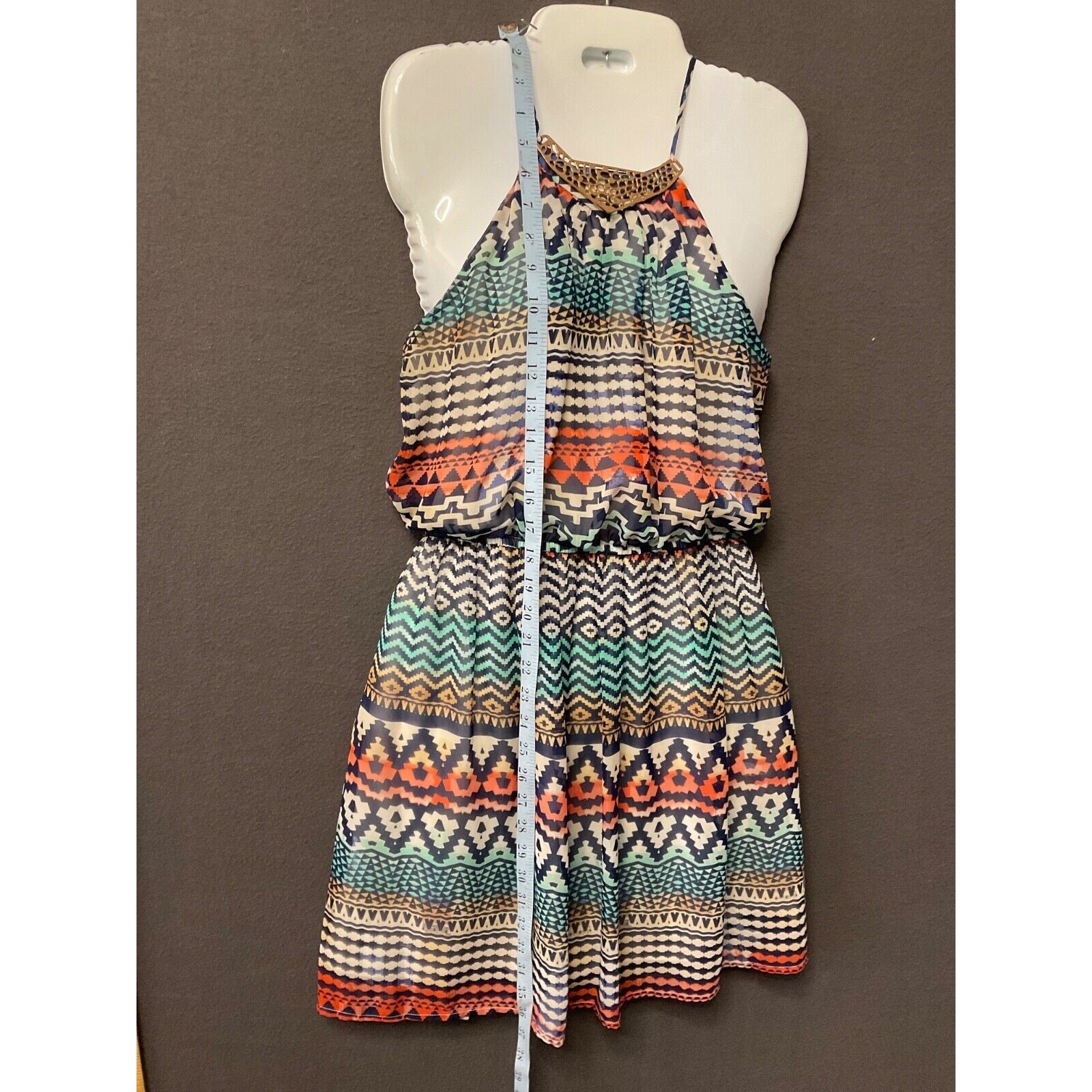 As U Wish Women's Halter Dress Multicolor Tribal Print Size M Sundress Beach