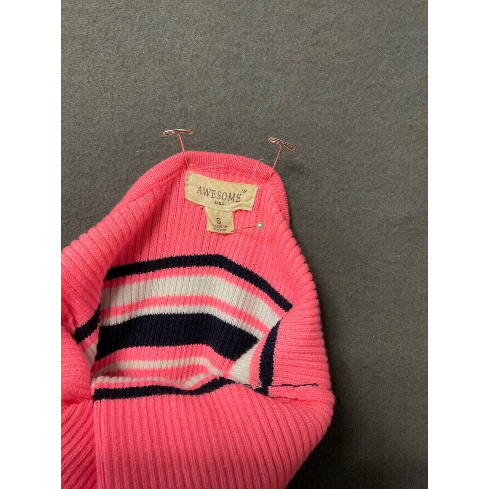 Awesome USA Pink Striped Sweater Ribbed Halter Dress Women's Small Lace-Up Back