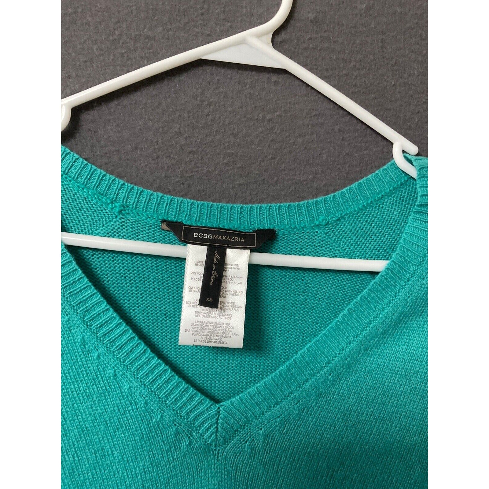 BCBG MAXAZRIA Women's V-Neck Seagreen Sweater Dress XS 70% Wool
