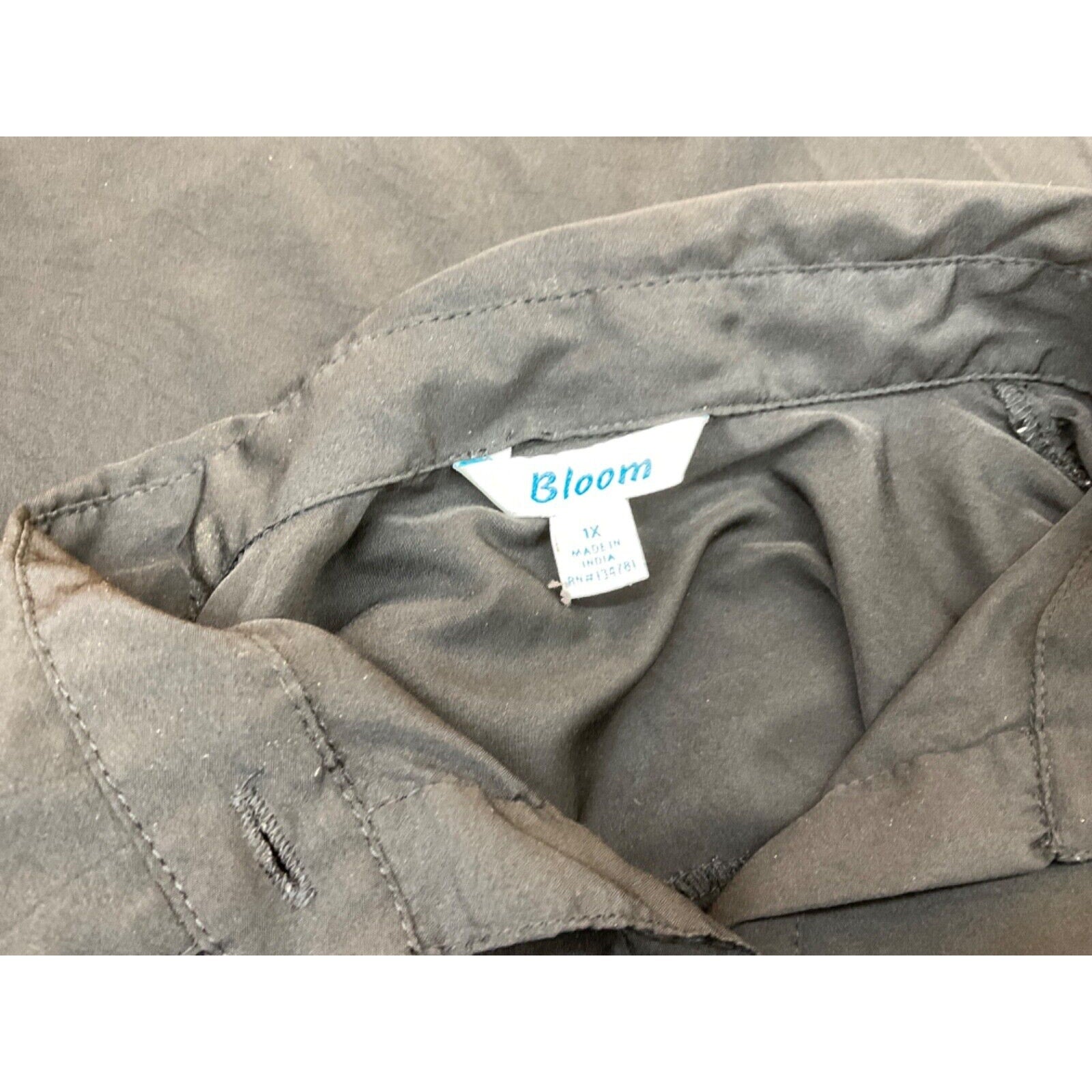 BLOOM 1X Solid Black Goth Style Shirt Dress Collared Long Sleeves 100% Polyester