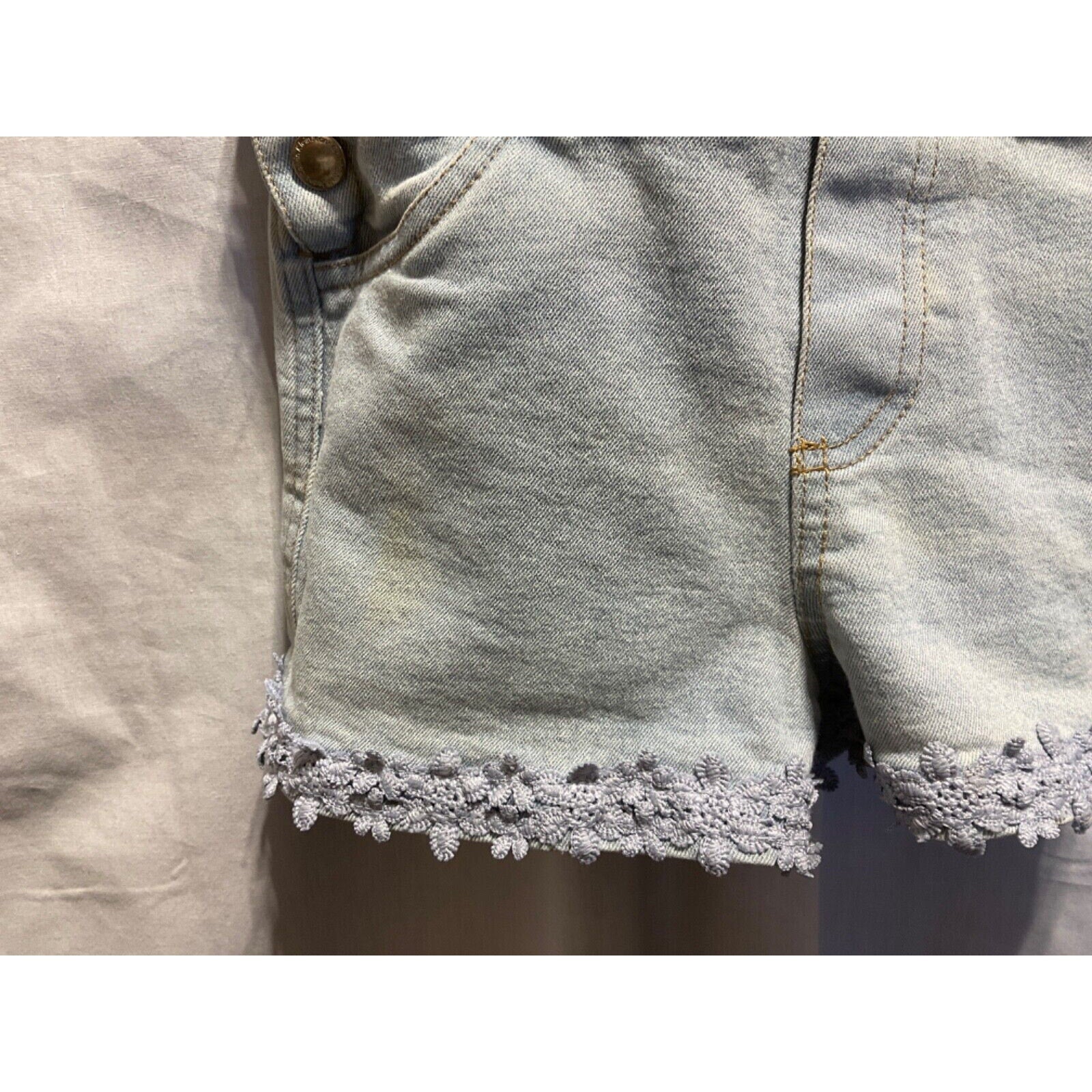 Calvin Klein Girls SZ 5 Denim Shorts Overalls Light Wash Lace Embellished Flaws