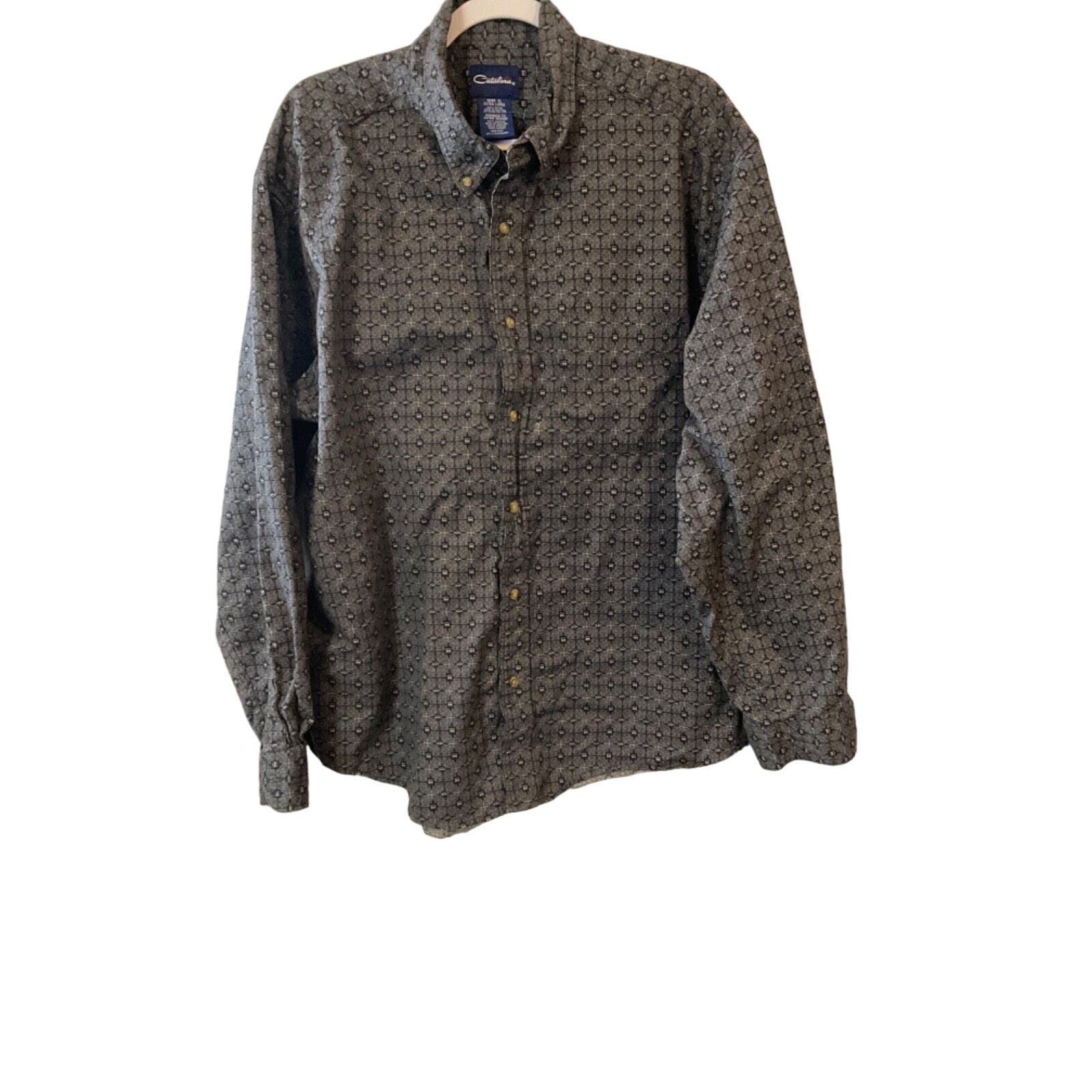 Catalina Men's XL Long Sleeve Button-Down Collar Shirt, Grey and Black Cotton