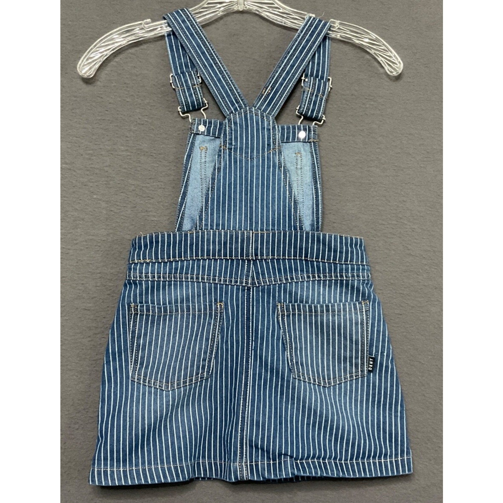 DKNY Girls 6X Blue Pinstripe Denim Overall Dress Adjustable Straps Pockets