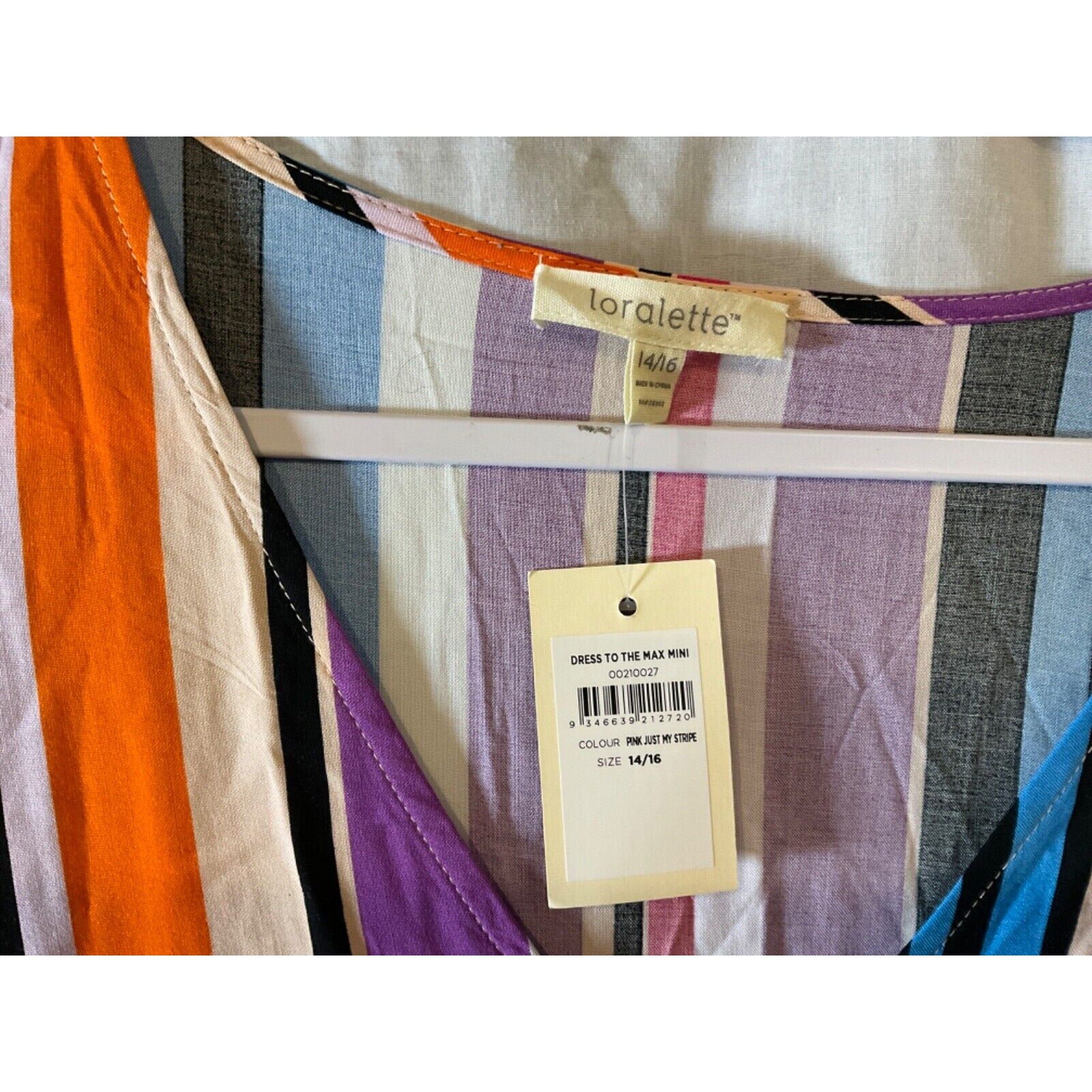 Elevate your wardrobe with this brand-new "Dress to the Max Mini" from Loralette's City Chic collection. This stunning pink stripe dress is a size 14/16 and comes with tags, ensuring its new condition.