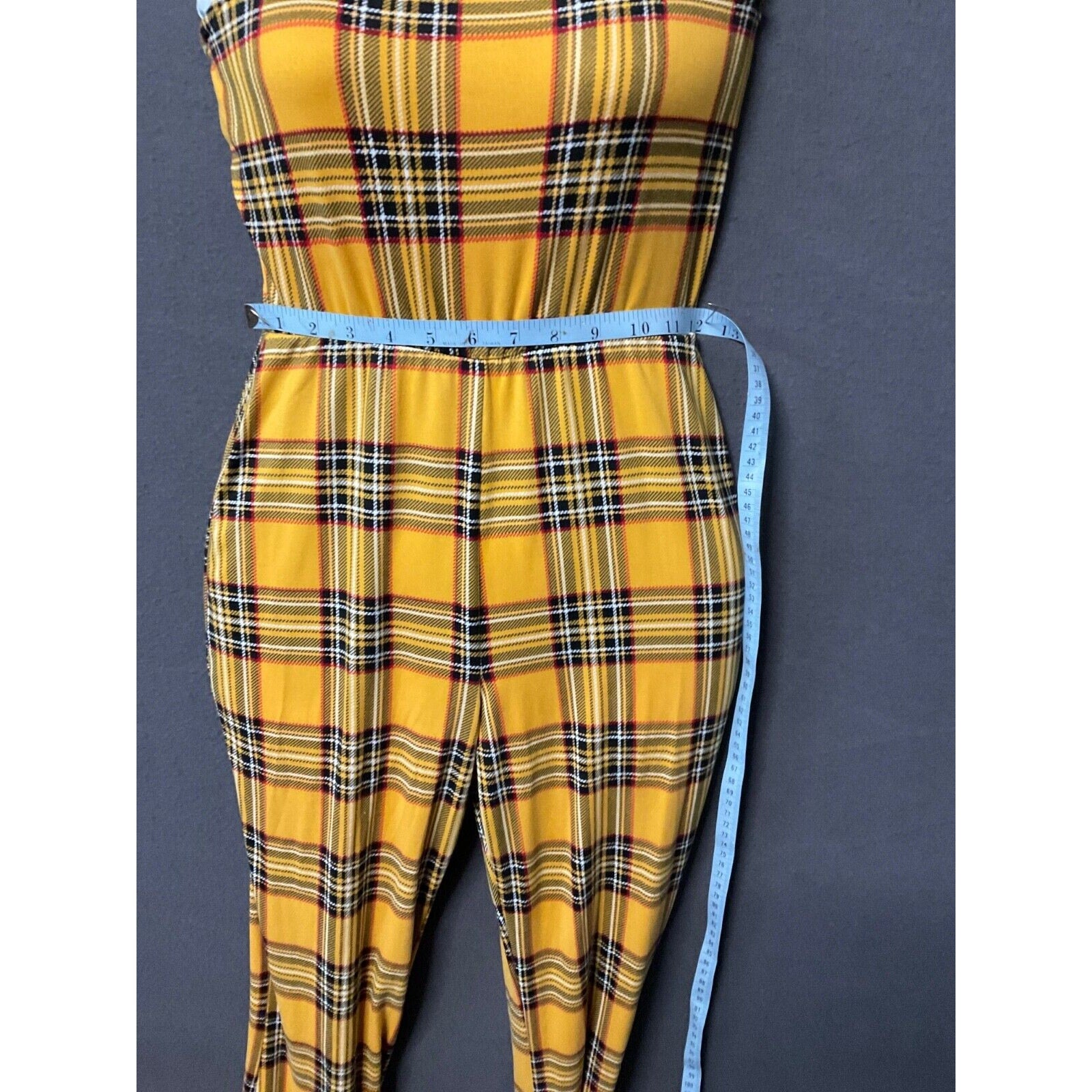 Polly & Esther Yellow Plaid Jumper Women's Sleeveless Vintage-Inspired Size L