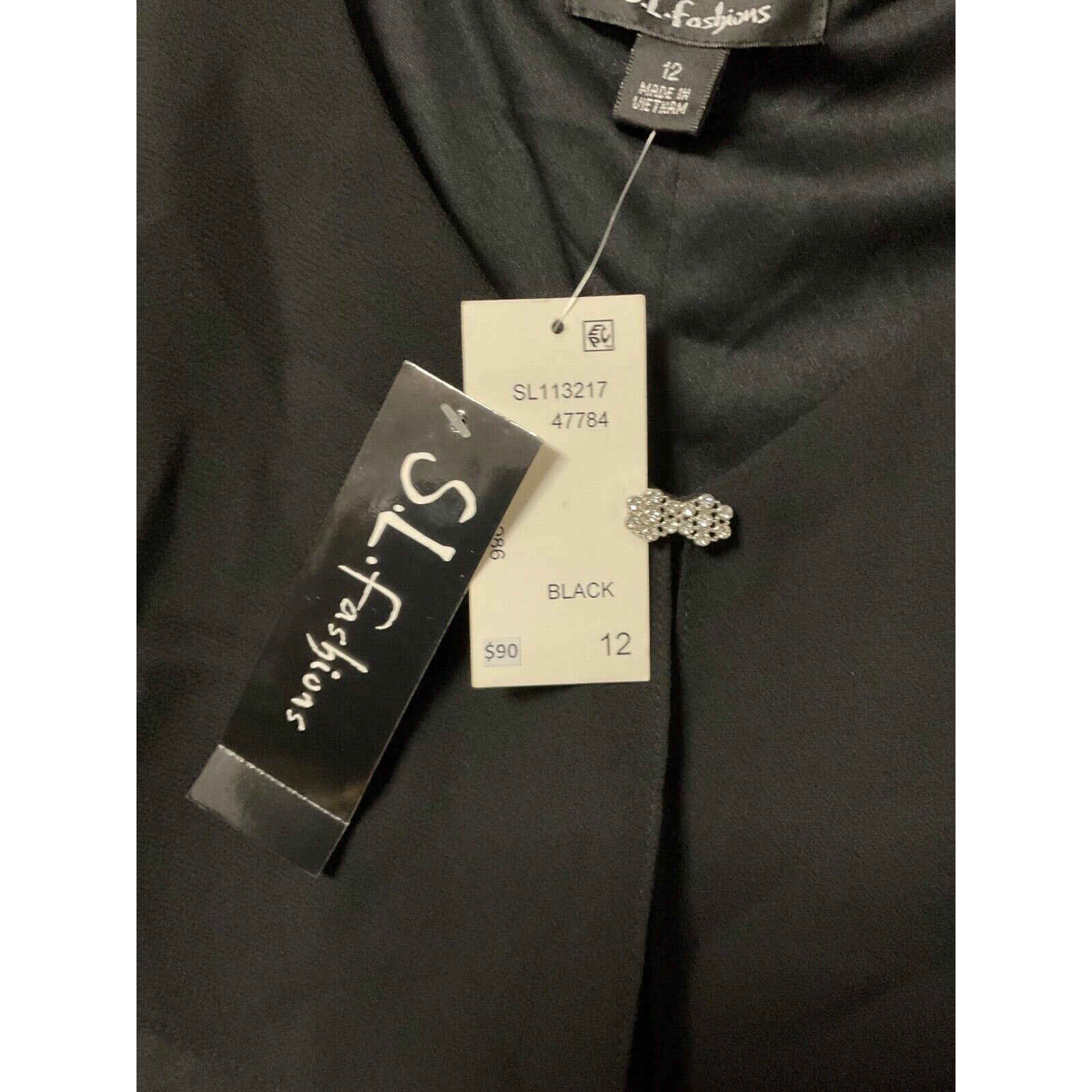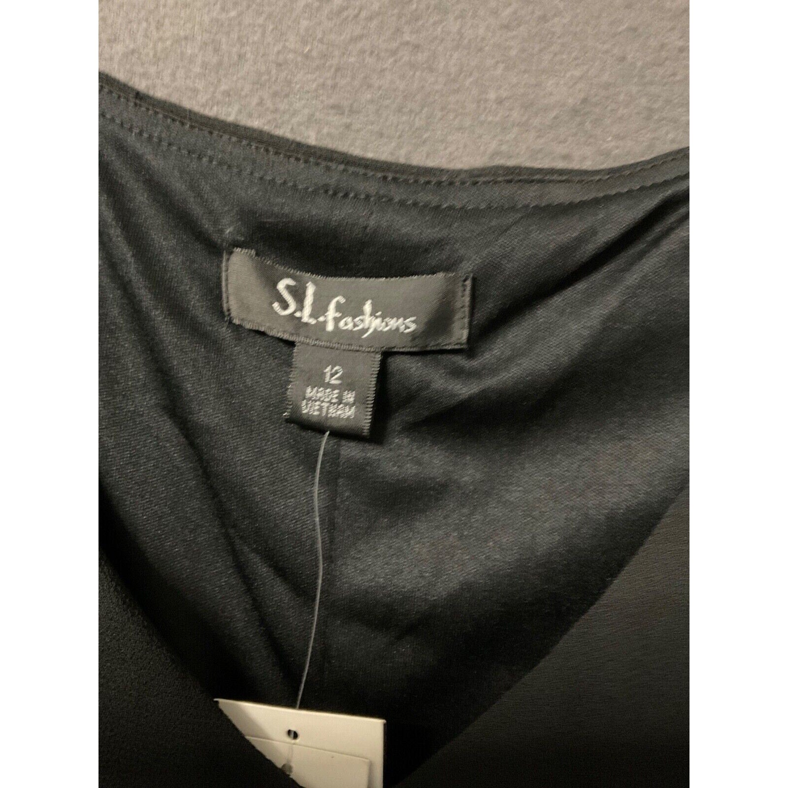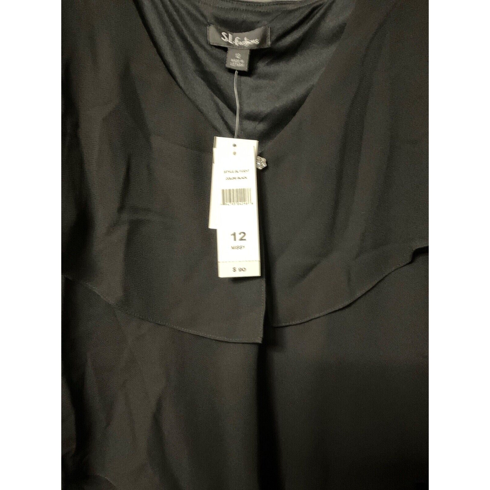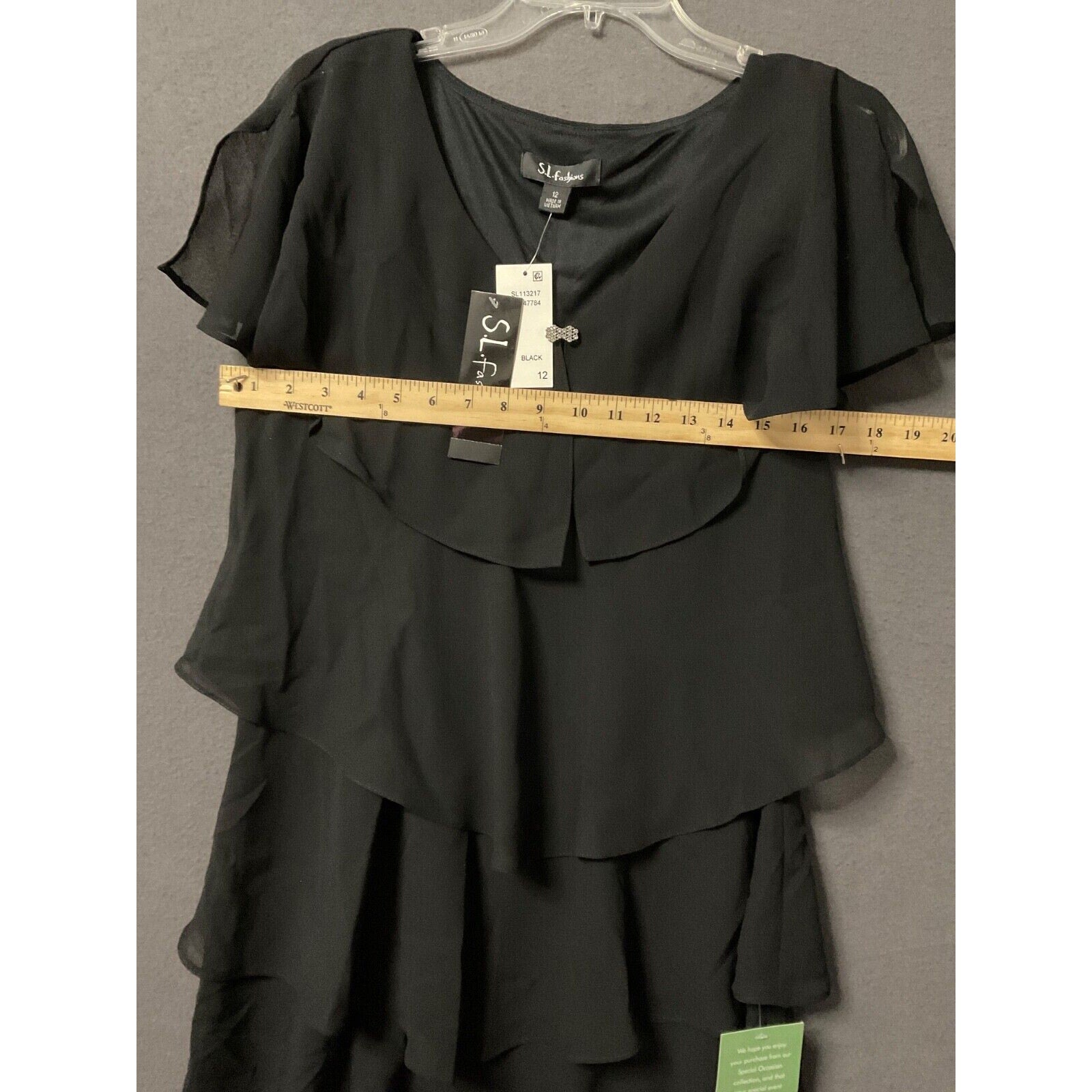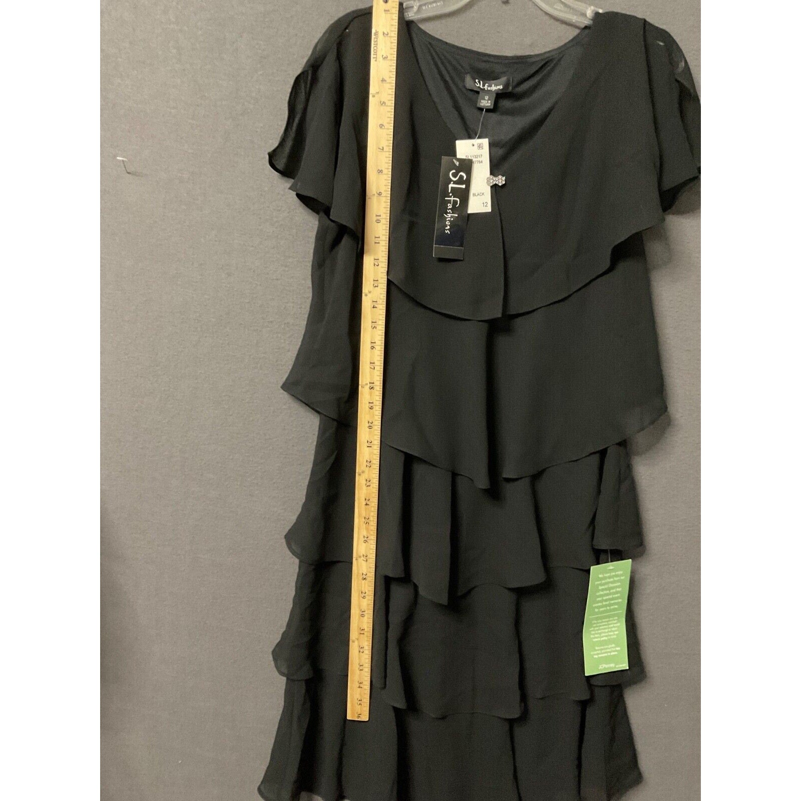 S.L. Fashions Elegant Black Tiered Midi Dress Missy SZ 12 Cocktail Party Dancing MSR $90.00