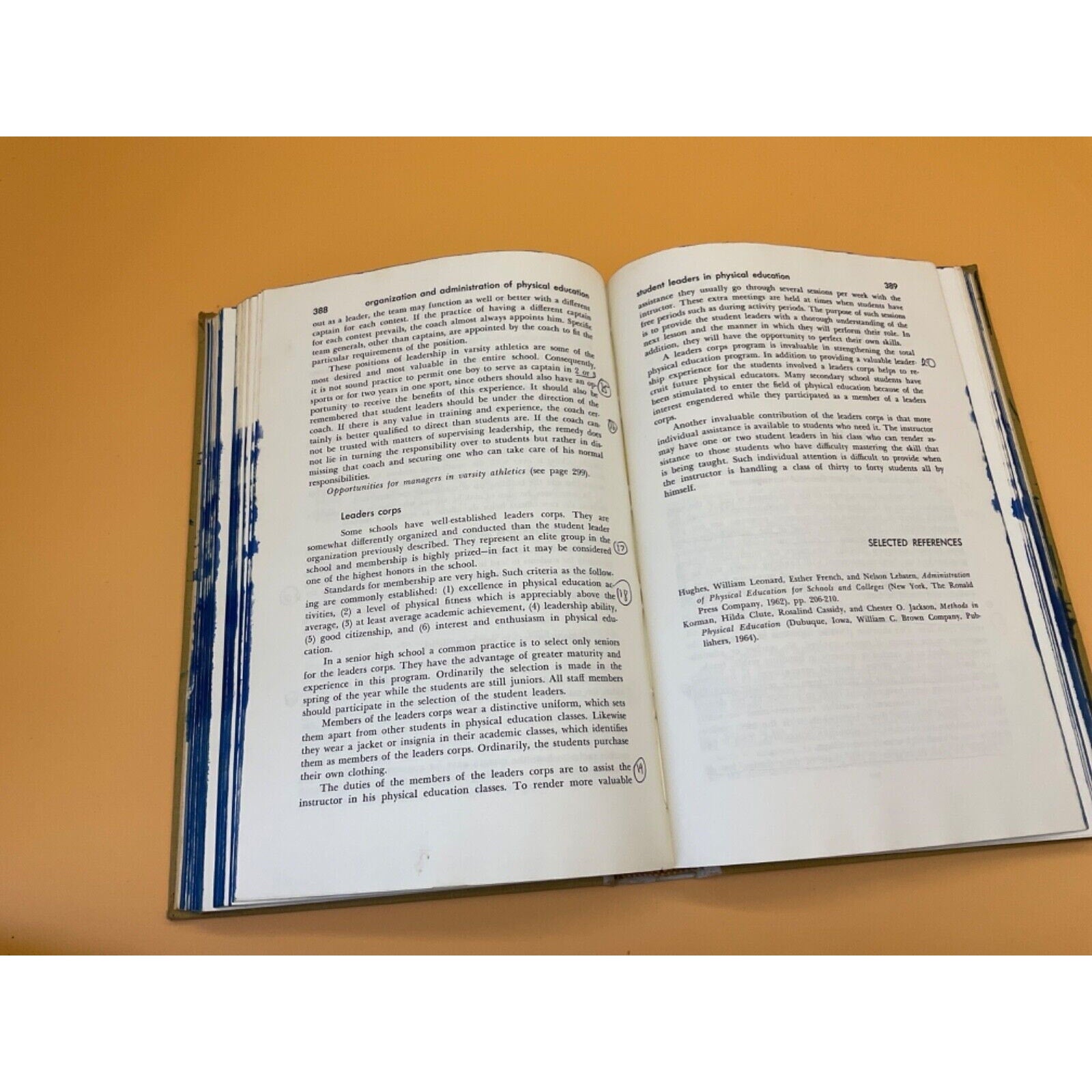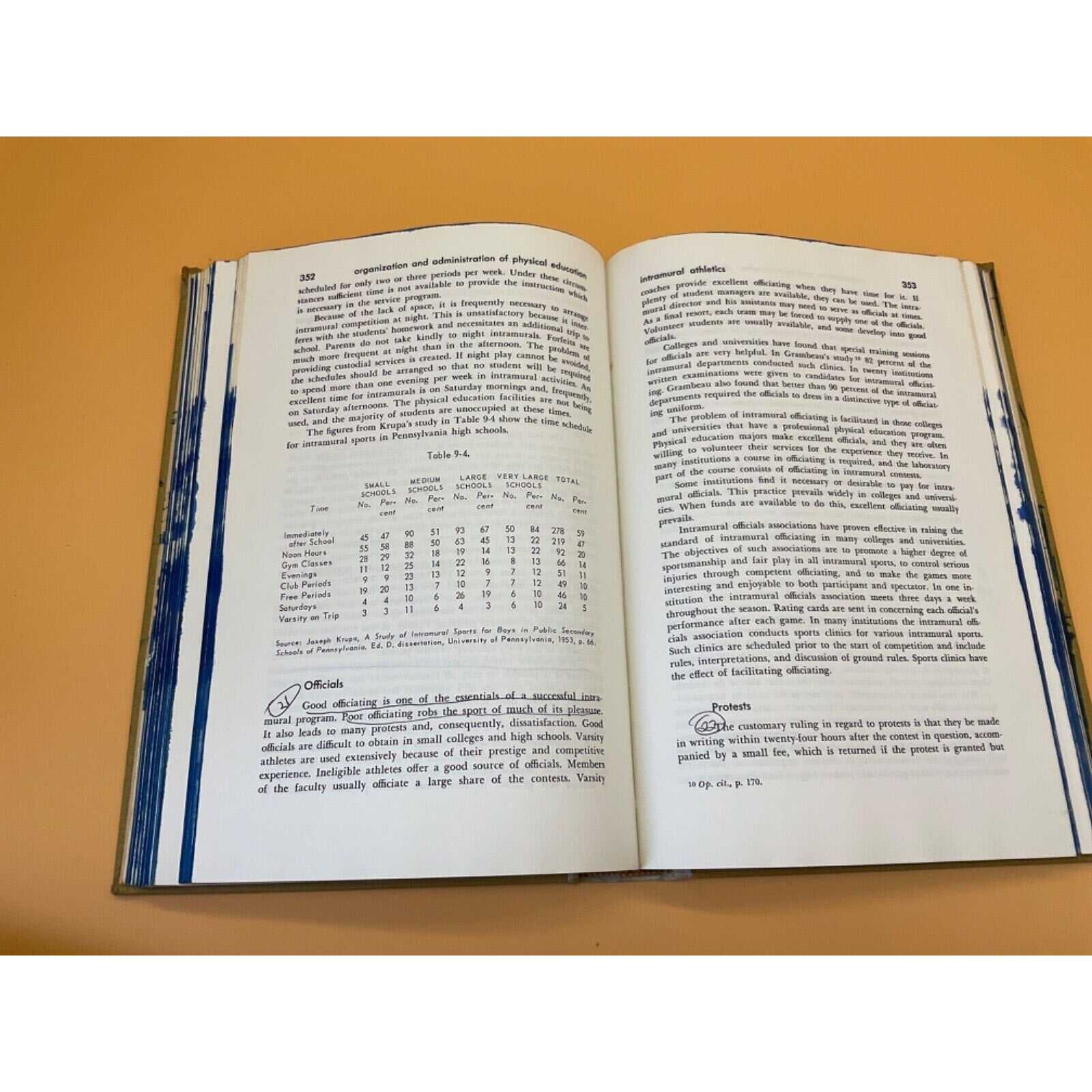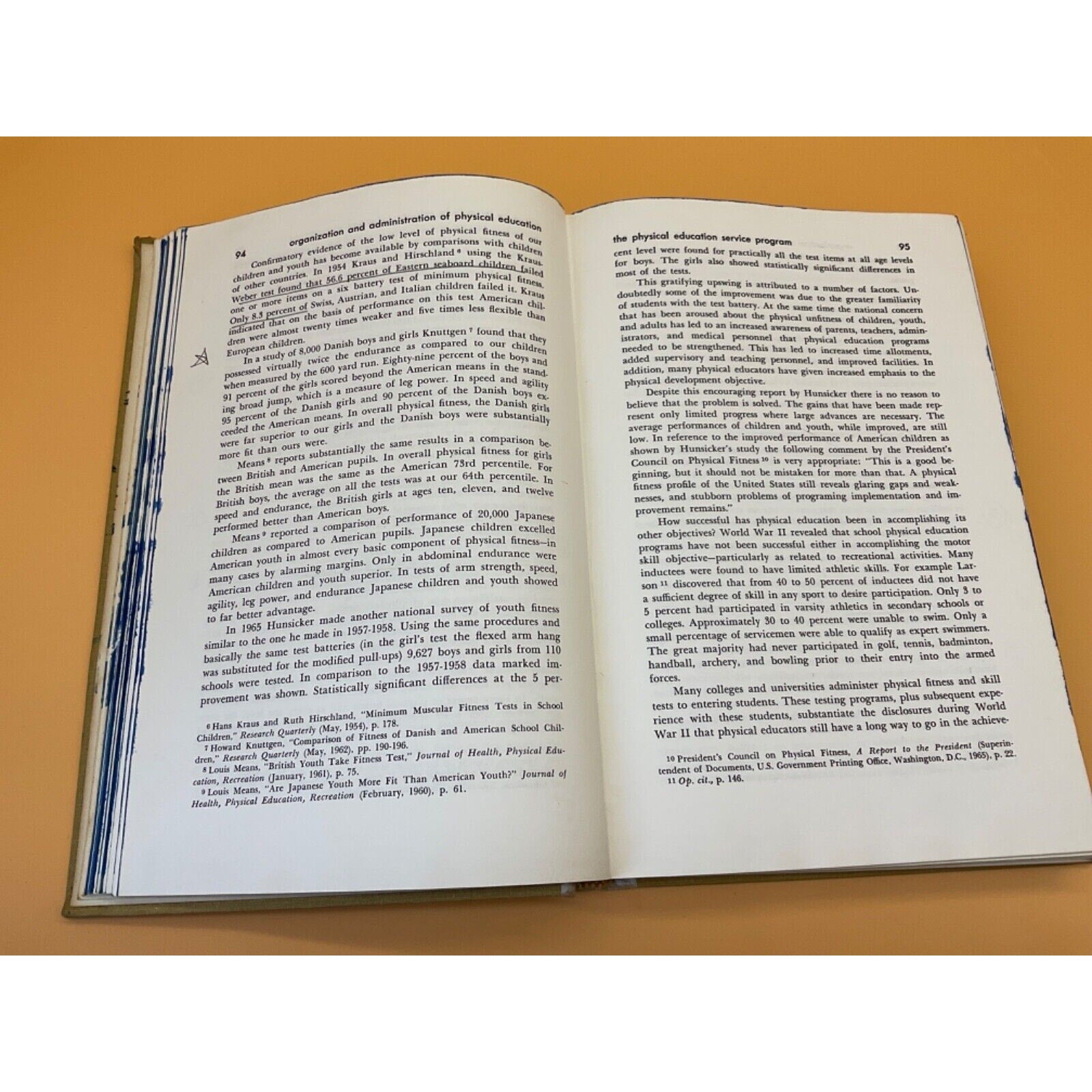 1967 hardcover edition of "The Organization and Administration of Physical Education," 4th edition, by Edward F. Voltmer and Arthur A. Esslinger. This book is in good condition but contains some writing on the pages. An excellent resource for students and professionals in physical education, this book provides detailed insights into the field's organizational and administrative aspects.