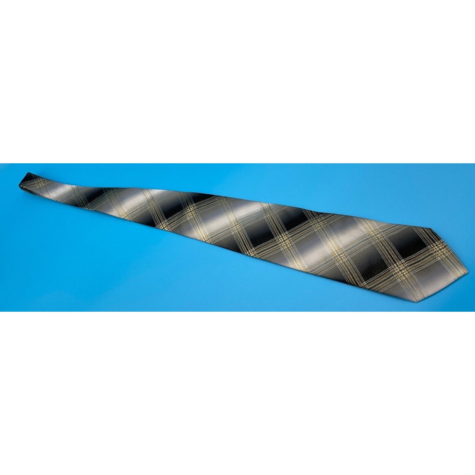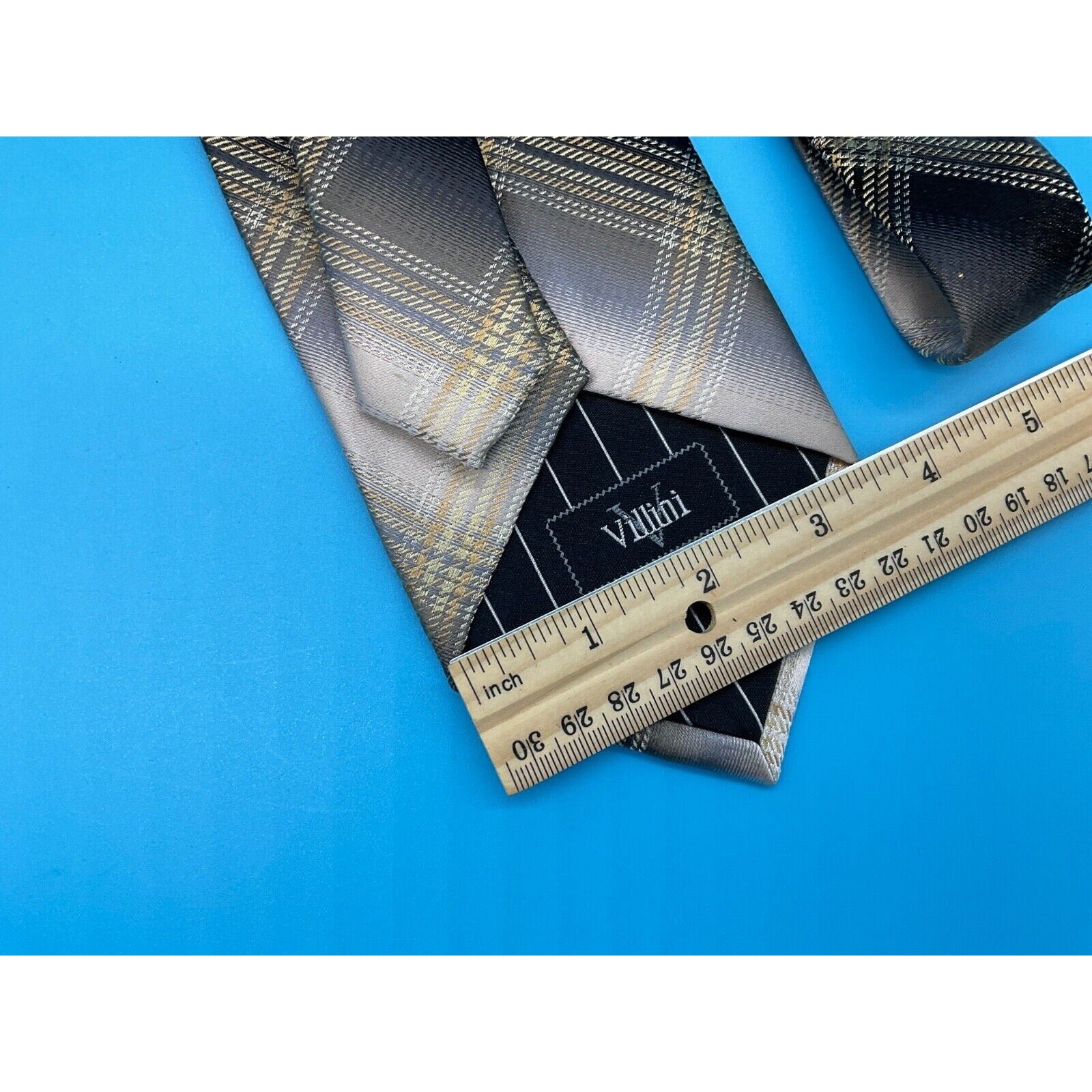 Villini 100% Silk Tie Plaid Gold/Brown Checkered Pattern Men’s 3.75" Classic