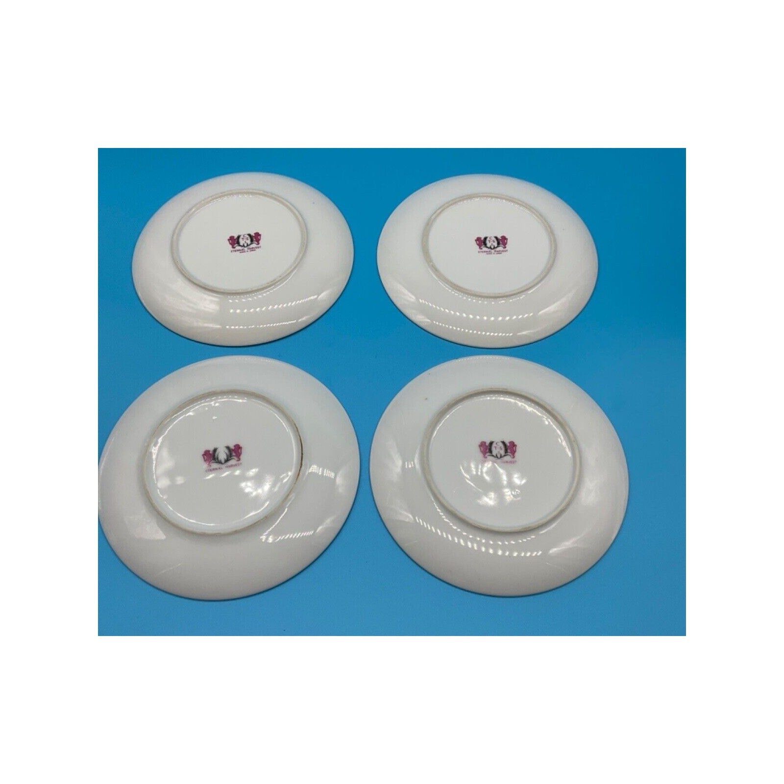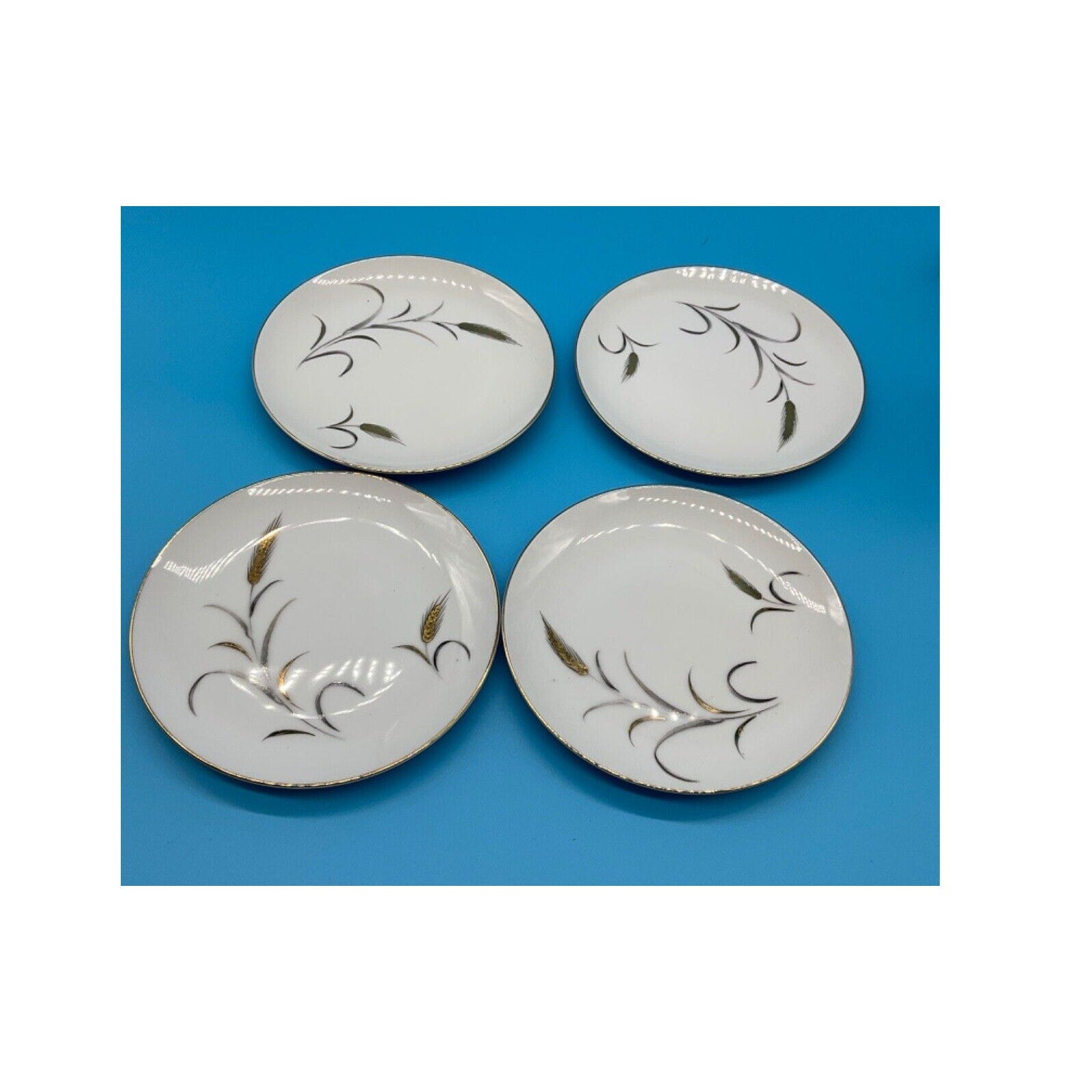 Set of 4 vintage Eternal Harvest 6-inch plates from the 1960s, featuring a beautiful floral pattern with a gold rim.