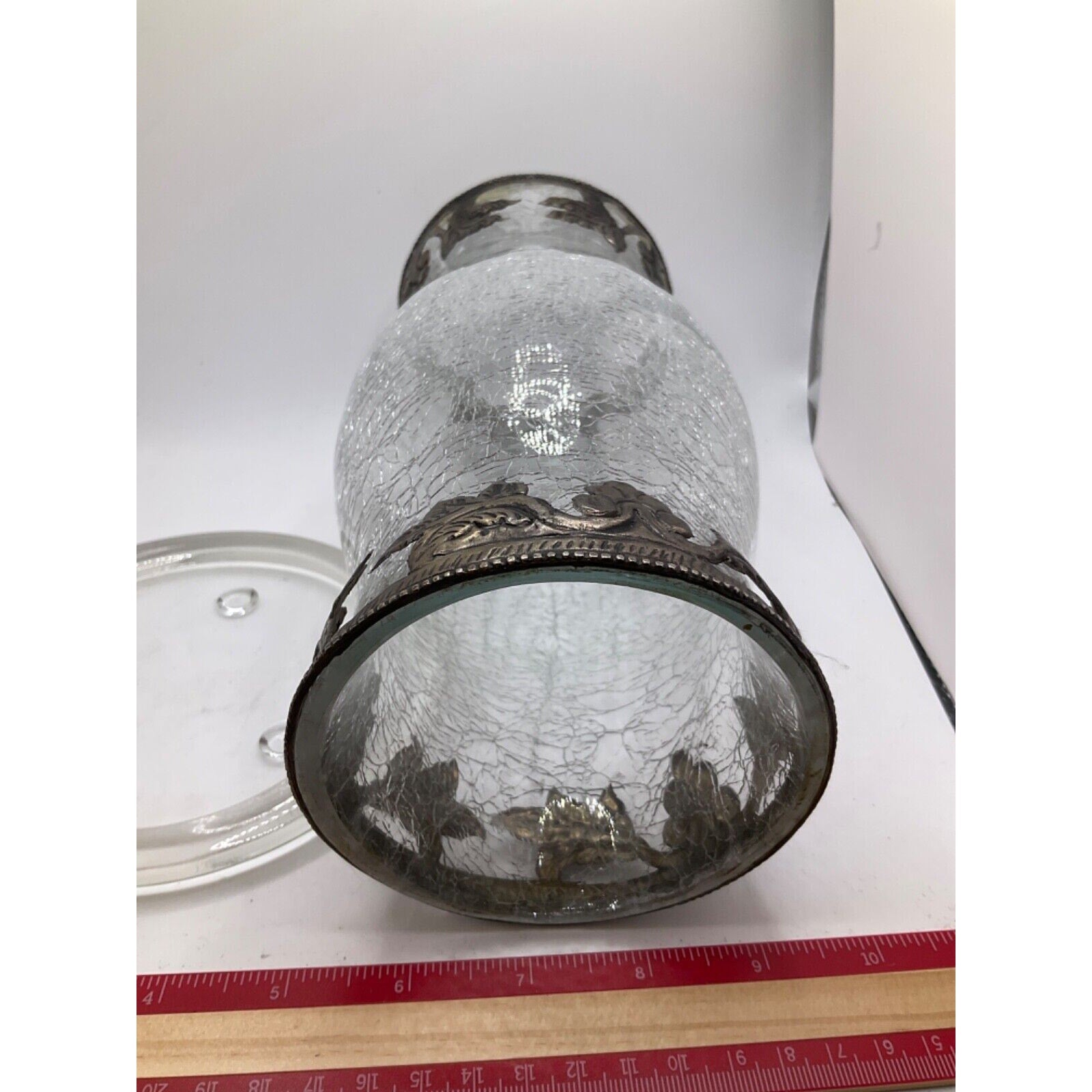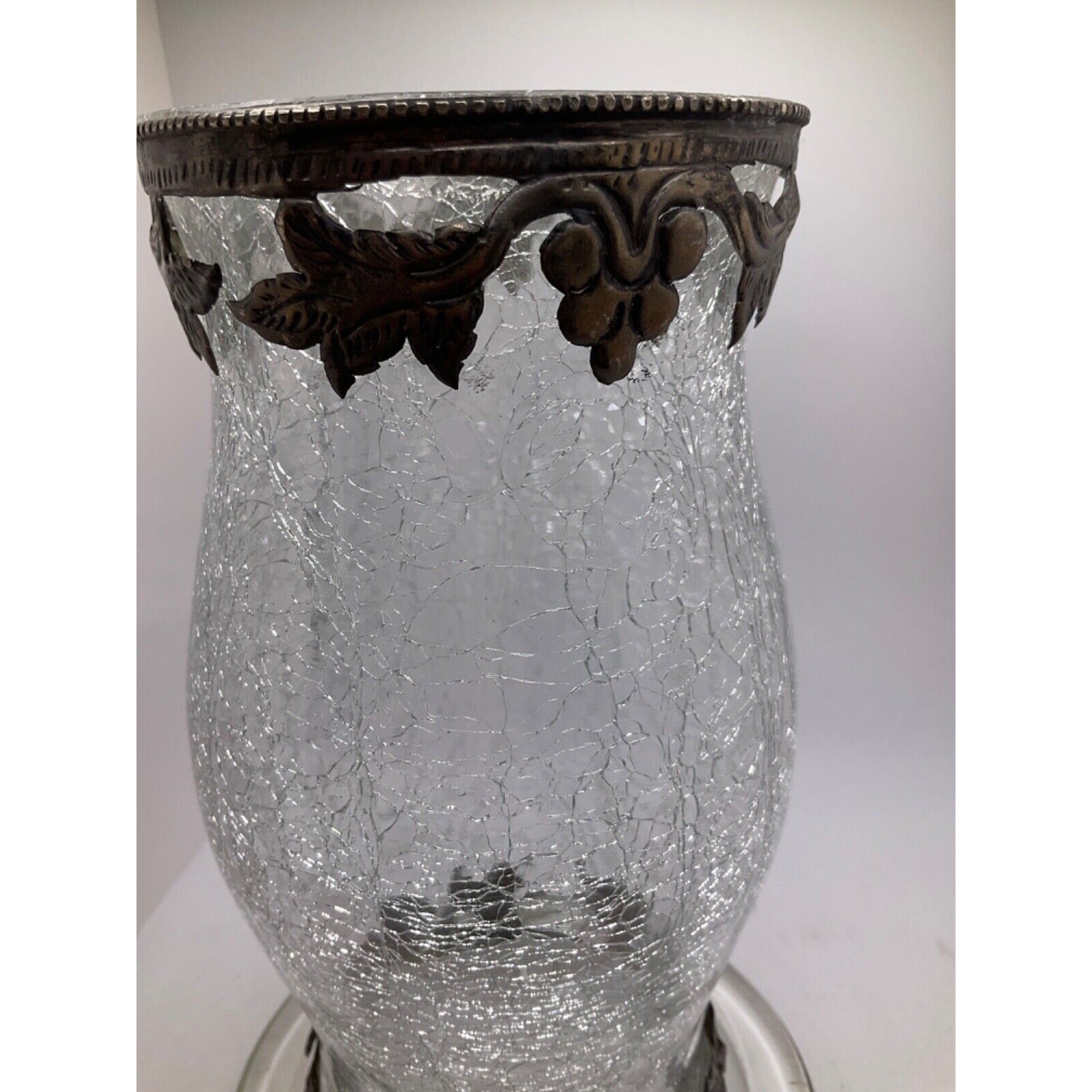 Beautiful Vintage Crackled Globe with Metal Design includes the candle plate, Almost 9 Inches Tall