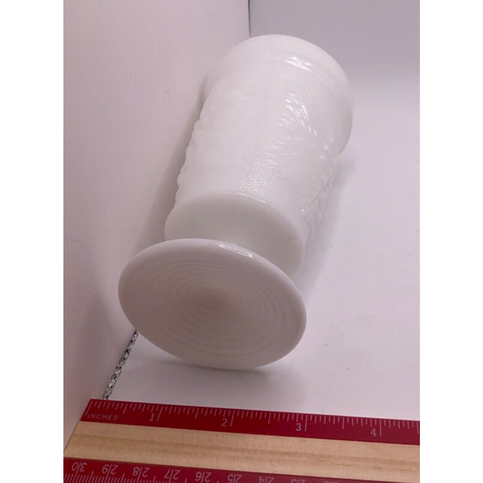 Vintage Rubbed Fluted Footed Milk Glass Vase with Grapes and Leaves Design - Number 18