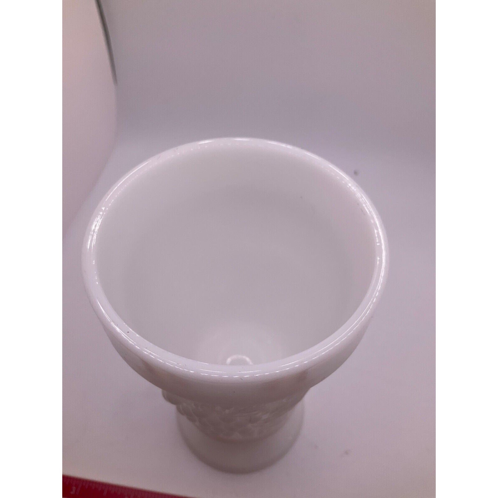 In great vintage condition, this milk glass vase has been well-preserved, retaining the beauty and intricacy of its design.