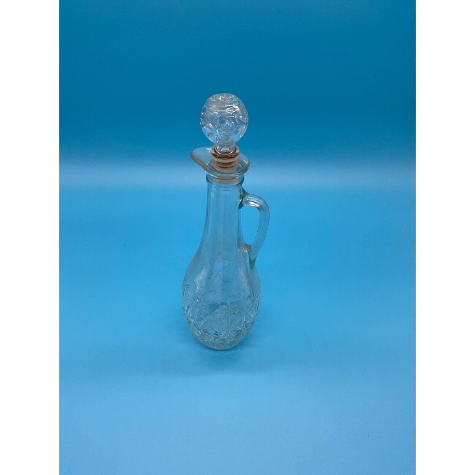 Vintage Glass Wine Decanter Starburst Cut 1970s Barware Holiday Party Wedding
