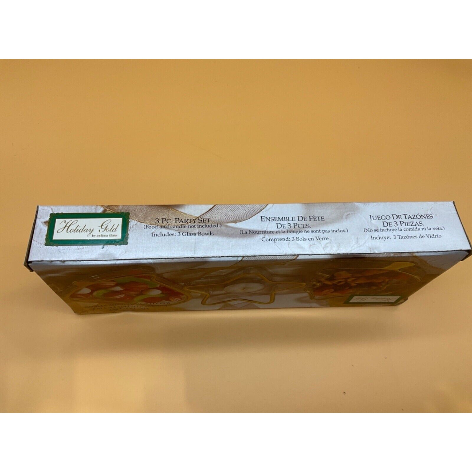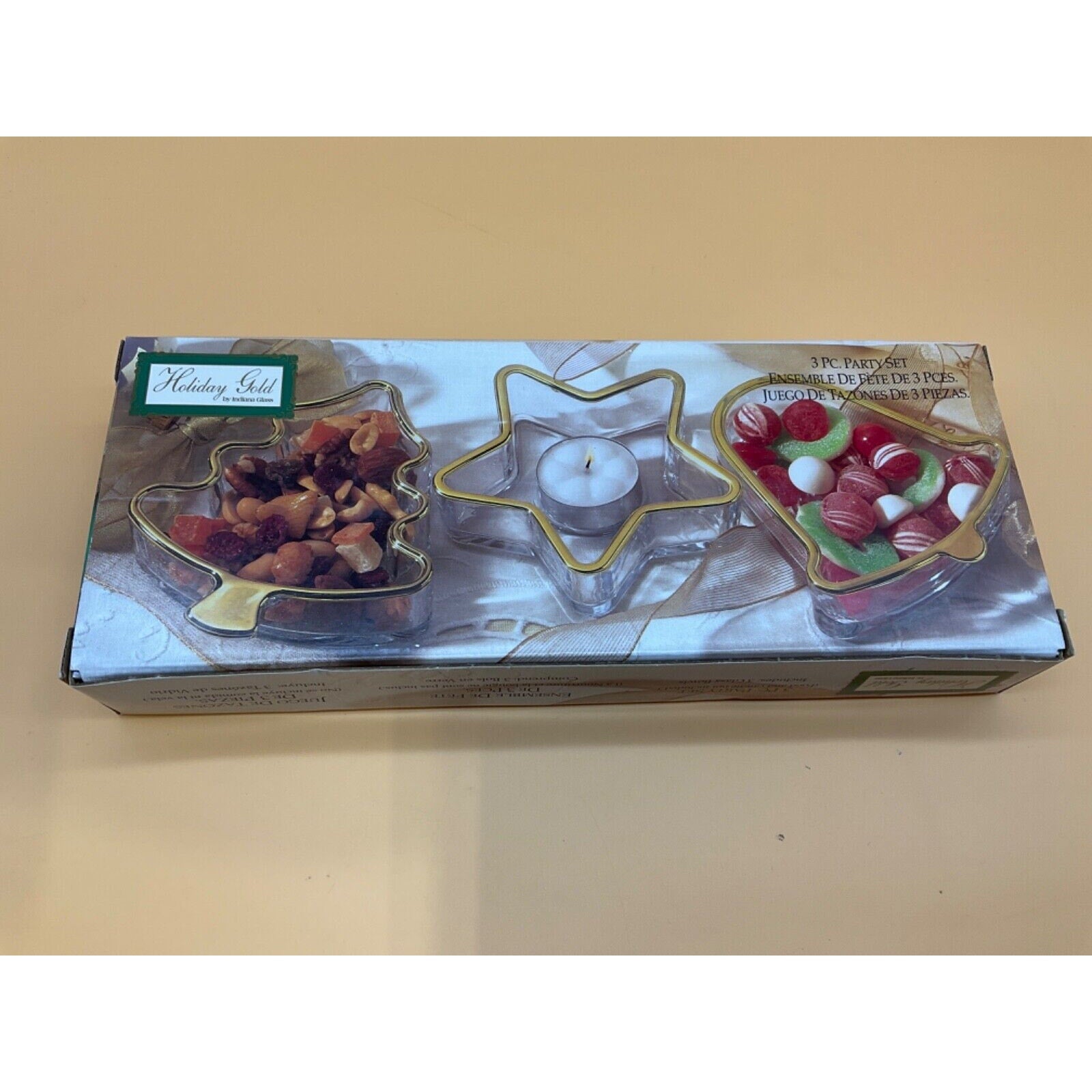Vintage Indiana Glass Holiday Gold 3-Piece Party Set - Shaped Bowls - Made in USA - Original Box - 1997 - Pre-Owned