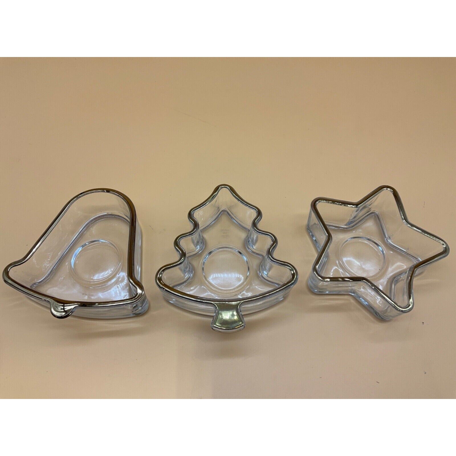 Vintage Indiana Glass Holiday Gold 3pc Party Set Shaped Bowls 1997 Made in USA