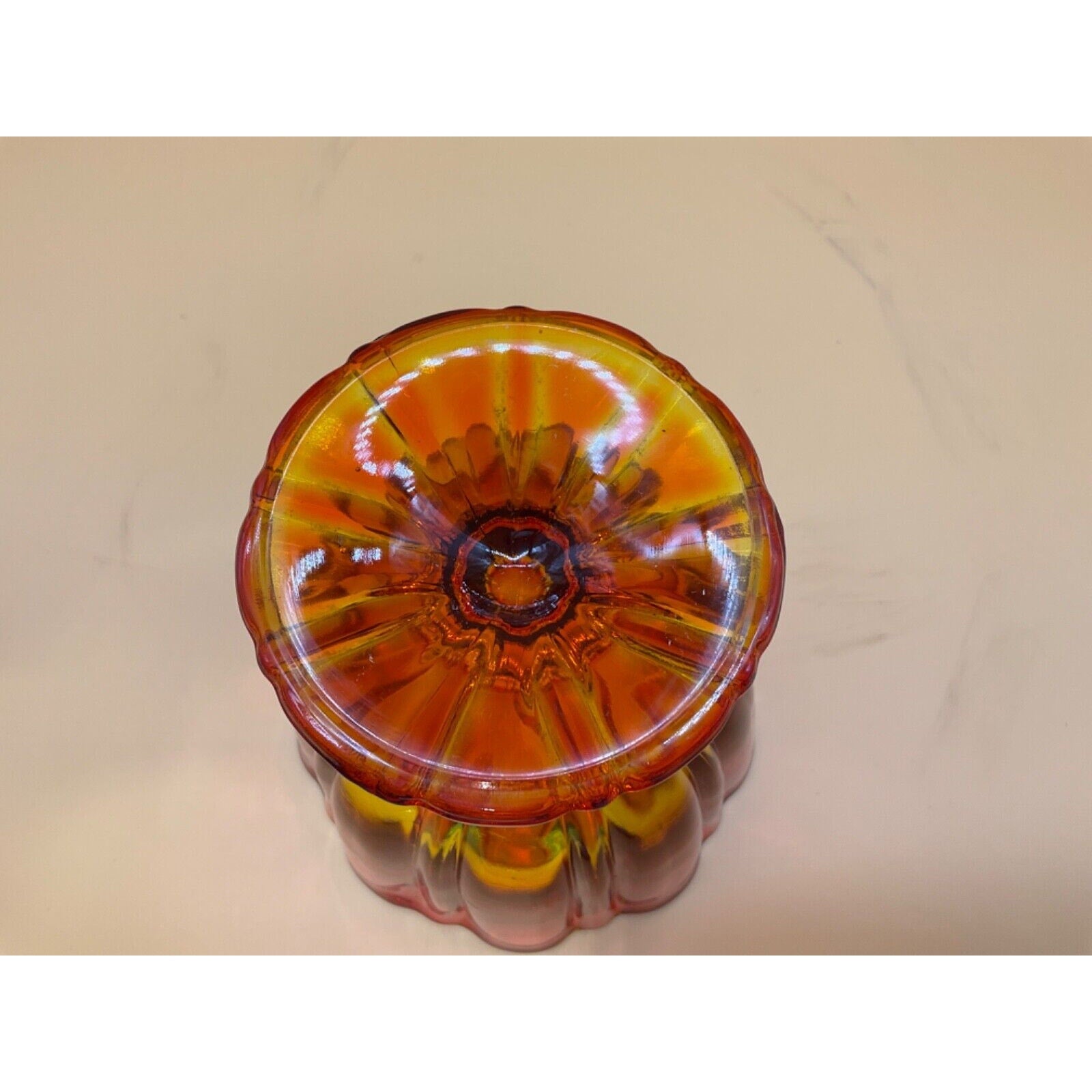 Experience the allure of the 1960s with this stunning Viking dish bowl, a true gem of Mid-Century Modern design. This eye-catching bowl is made from heavy glass and features a vibrant hot orange color that transitions to a deeper amber. Its substantial feel and striking color make it a standout piece, perfect for collectors of vintage glass or enthusiasts of retro decor.