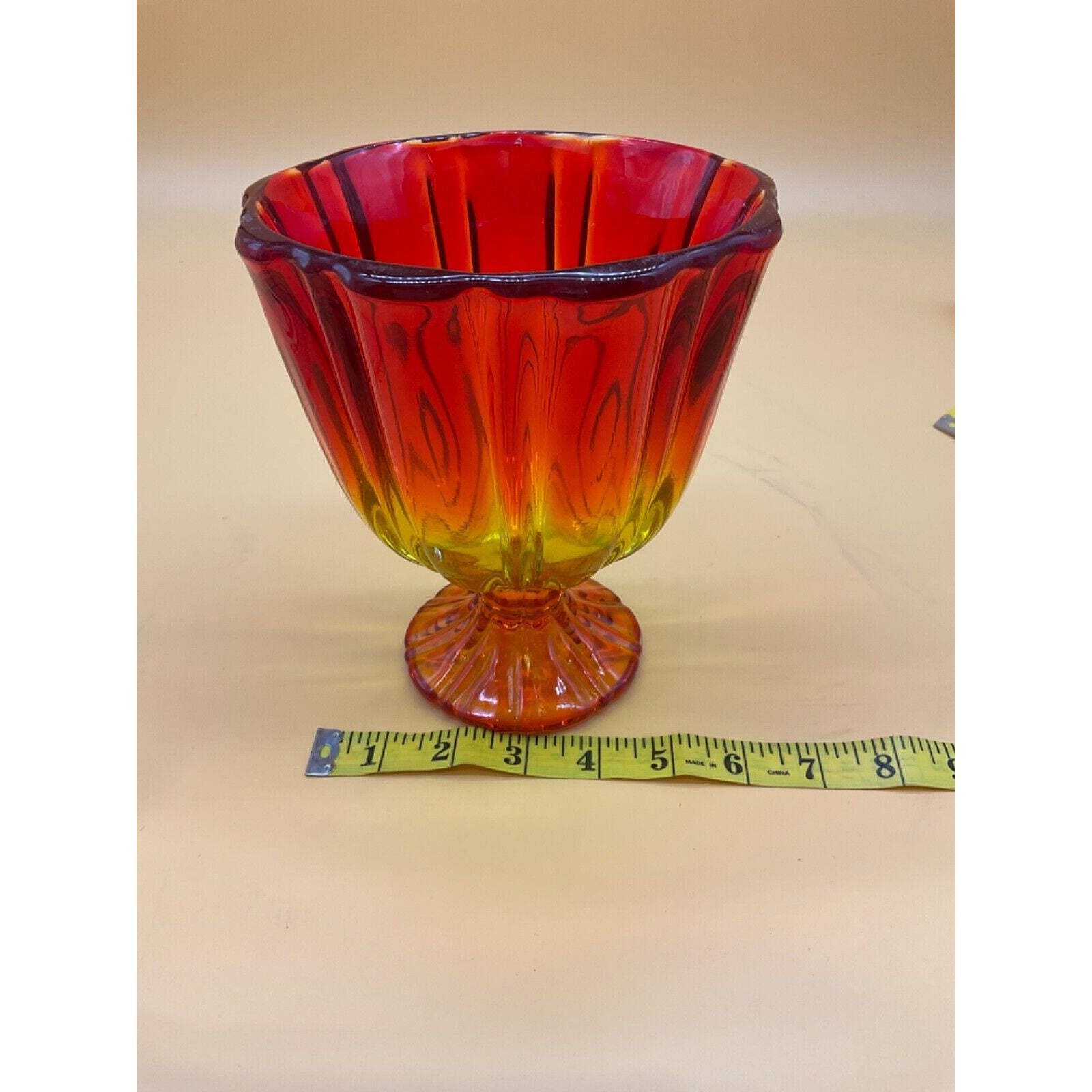 Vintage LE Smith Glass Bowl Hot Orange 60s Retro Heavy GLASS Dish