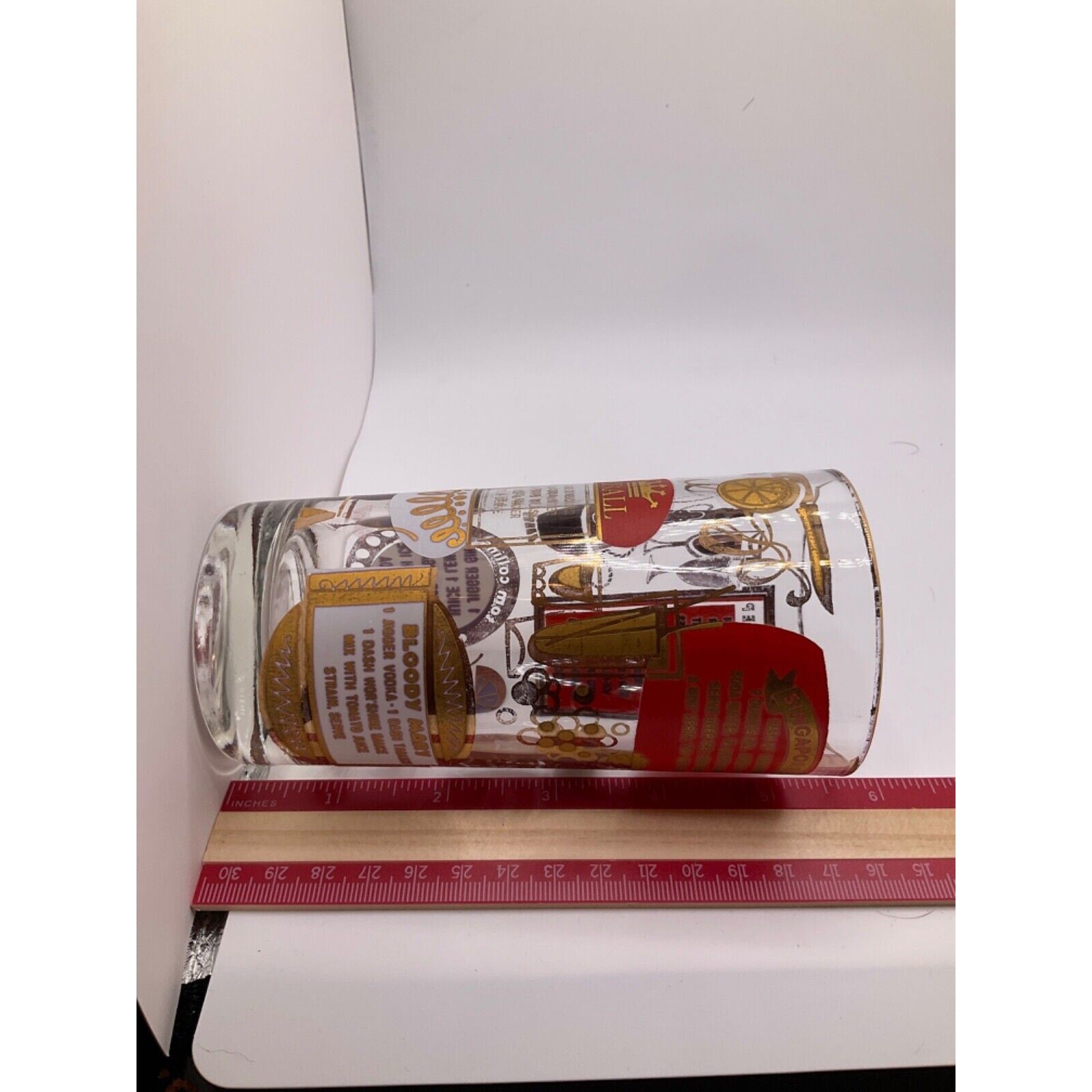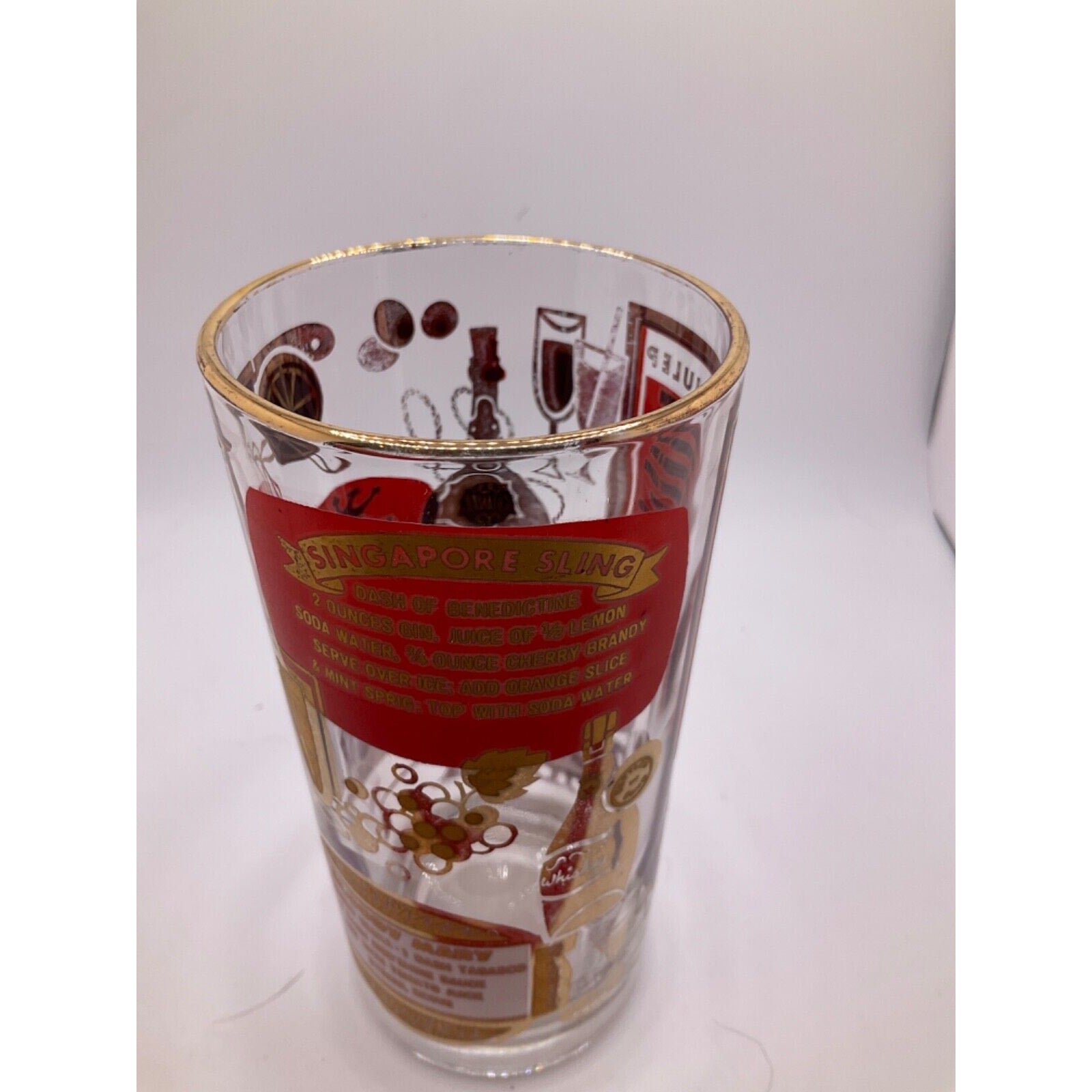 Vintage MCM Highball Collins Cocktail Glasses w/Recipes - 6" Tall, Red & Gold